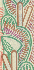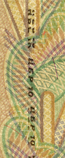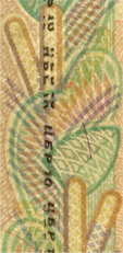 линий, расположенные на купонных полях оборотной стороны банкноты, невооруженным