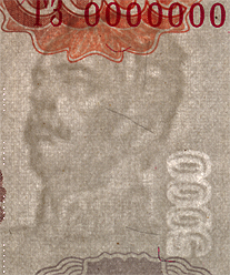 филигранный водяной знак — цифровое обозначение номинала (число 5000).