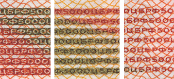 изображения чисел «5000», разделённые полосами микротекста. При изменении угла зрения