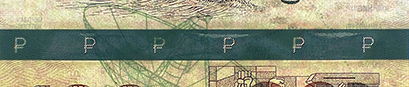 При рассматривании банкноты под острым углом на орнаментальной полосе виден символ рубля. В зависимости от расположения банкноты символ рубля выглядит светлым на темном фоне или темным на светлом фоне.