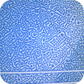 Predominant colour of the note is blue.
