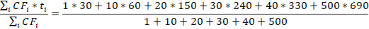 В приведенном примере расчетное значение средневзвешенного по денежным потокам срока до погашения будет рассчитано следующим образом: