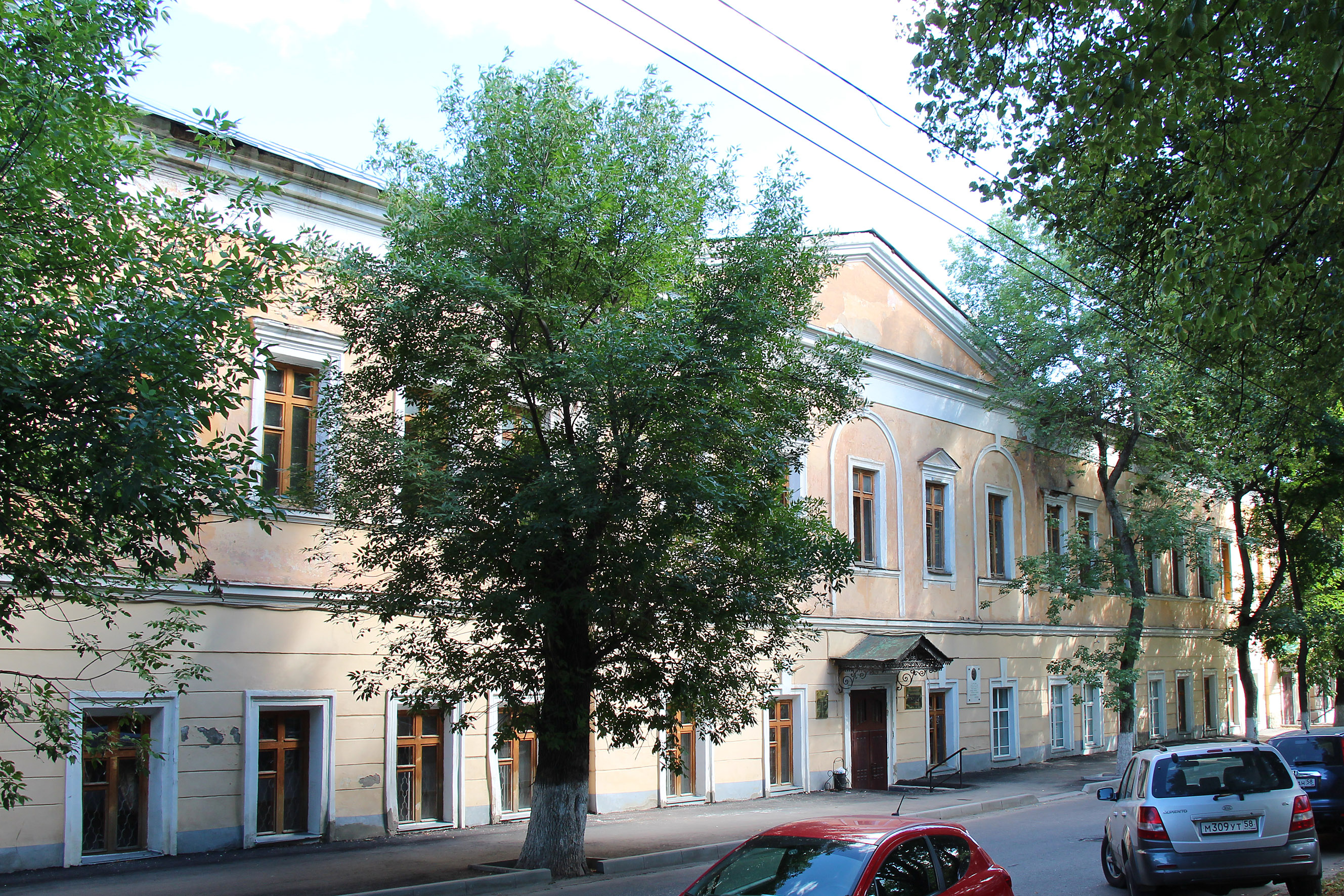 Здание — первый корпус присутственных мест (сегодня ул. Белинского, 8), расположено на сохранившейся части вала бывшей крепости. В первом корпусе длительное время находились основные органы местной администрации: губернское правление, приказ общественного призрения и казенная палата, отделение банка и казначейство. Примечательно, что в
